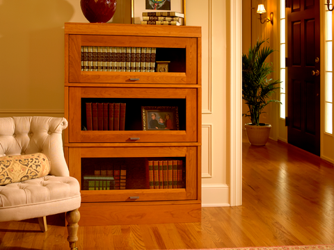 A simple design with clean lines, the 800 Series Legacy Barrister Bookcase Collection easily blends with any décor. Available in 21 wood finishes, the Legacy Collection is handcrafted in the USA in your choice of locally sourced, kiln-dried solid Cherry, Oak, Birch or Walnut wood. The straight edges of the Legacy style are ideal for arranging back-to-back or end–to-end bookcase groupings. The shelf sections stack securely together and are interchangeable for limitless shelving combinations.